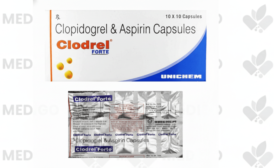 Clodrel Forte Tablet is a combination of two antiplatelet medicines or blood thinner used to reduce the formation of harmful blood clots in blood vessels. It is used to prevent a heart attack or stroke in people with heart disease. It is also used to treat acute coronary syndrome (ACS)._x000D_
