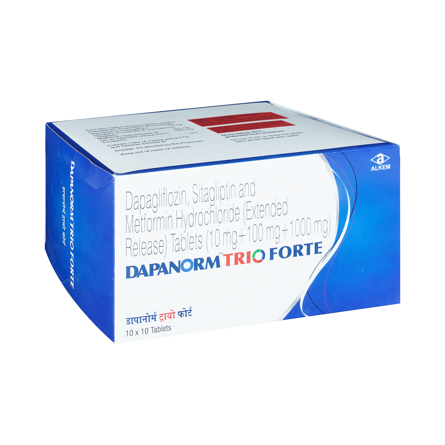 Dapanorm Trio Forte Tablet ER is a combination medicine that helps control blood sugar levels. This medicine is used with diet and exercise to improve blood sugar control in adults with type 2 diabetes mellitus.