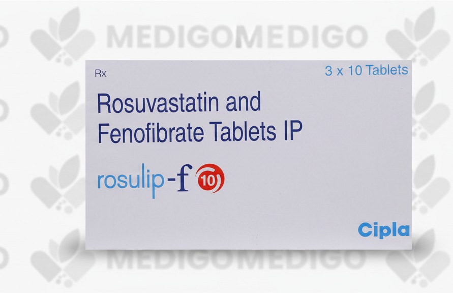 Rosulip-F 10 Tablet is a combination of two lipids (fat) lowering medicines. It is used to lower the levels of lipids known as cholesterol and triglycerides in the blood when lifestyle changes (eg. low-fat diet) on their own have failed.