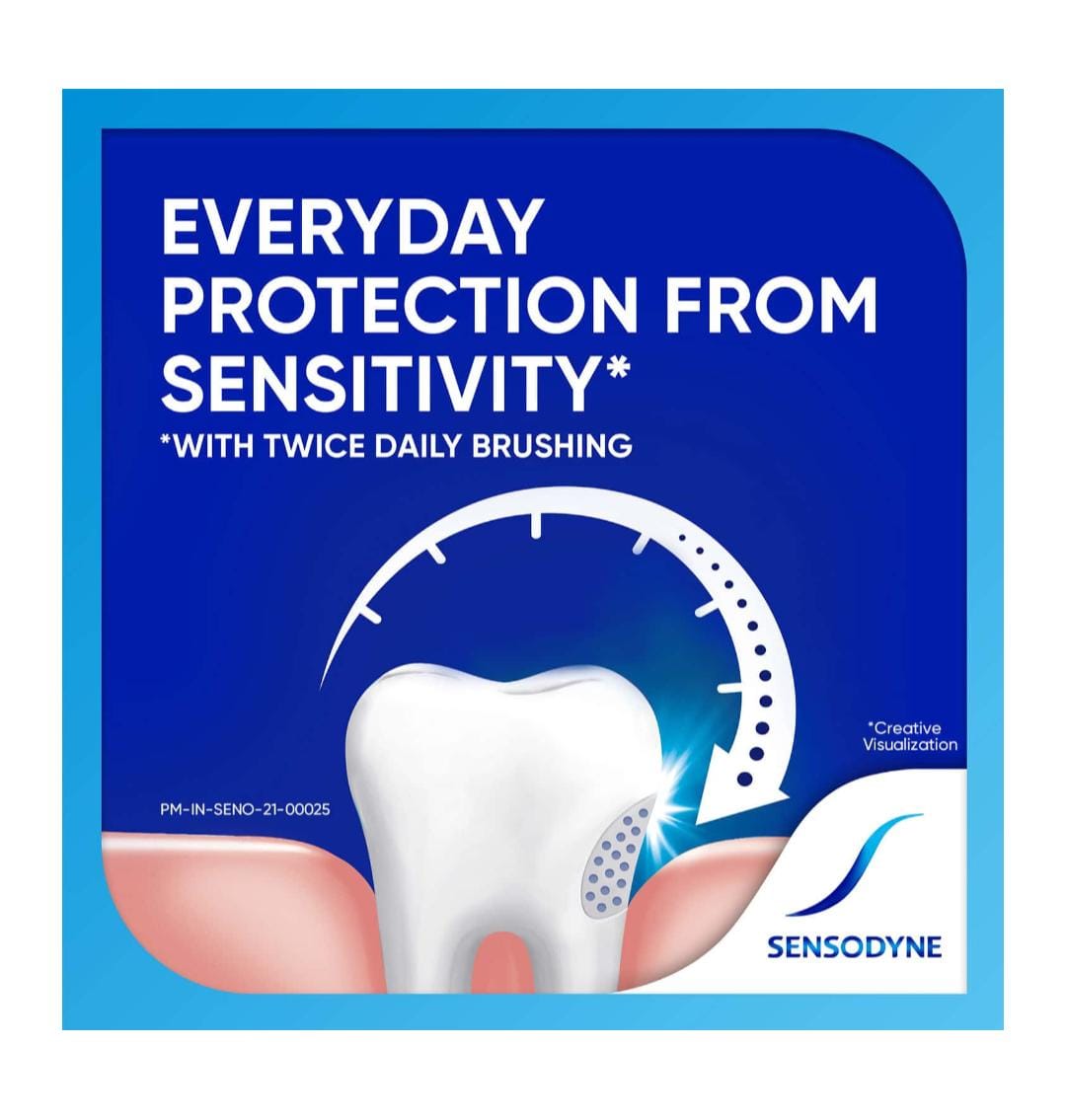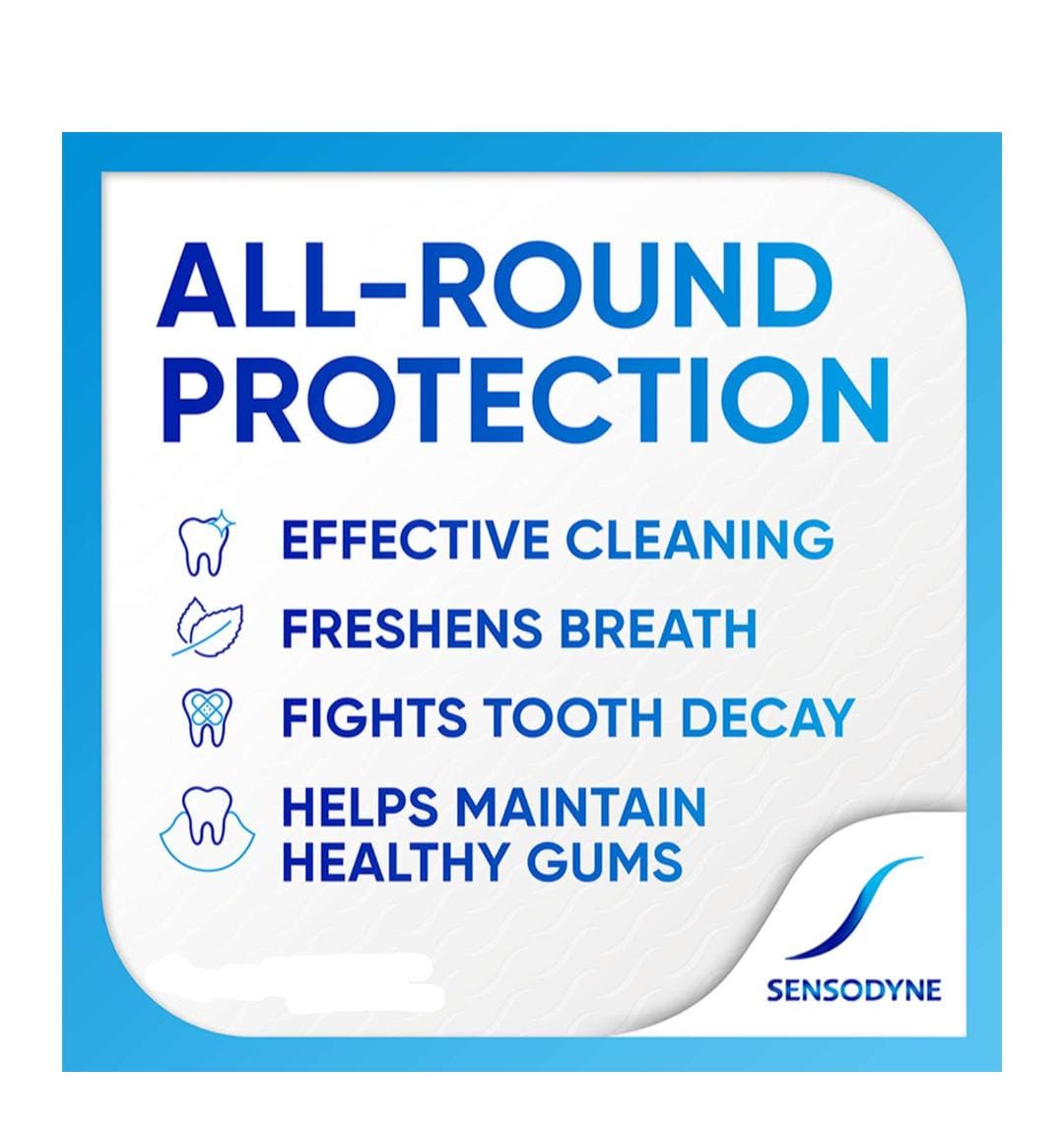 When the protective layer of teeth (enamel) is worn away or gums recede, the dentine underneath becomes exposed. When the exposed dentine comes in contact with hot, cold, sweet, or sour food and drinks, it can trigger a sharp, short sensation called tooth sensitivity. Sensodyne Fresh Gel is a daily fluoride toothpaste that helps protect against tooth sensitivity while still providing the benefits of a regular paste, such as strong teeth and healthy gums. It also has a cool, refreshing taste that leaves your mouth feeling fresh and clean. With twice daily brushing, you can enjoy your favourite foods and drinks without the worry of sensitive teeth.