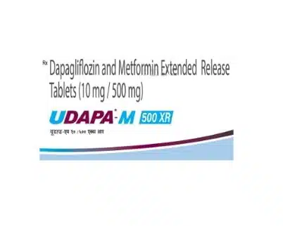 Udapa-M 500 XR Tablet is a combination of two medicines used to treat type 2 diabetes mellitus. It helps control the high blood sugar levels seen in diabetes. This reduces the chances of serious complications of diabetes and also helps prevent heart disease._x000D__x000D_Udapa-M 500 XR Tablet can be taken with or without food at any time of day but you should try to take it at the same time every day. The dose will be decided by your doctor. Don’t stop taking it without asking your doctor. If you do, your blood sugar levels may increase and put you at risk of serious complications like kidney damage and blindness. This medicine is only part of a treatment program that should include a healthy diet, regular exercise, and weight reduction as advised by your doctor._x000D__x000D_The most common side effects of this medicine include sore throat, nasal congestion, runny nose, headache, nausea, vomiting, and diarrhea. Drinking plenty of fluids while using it will help prevent dehydration. Some people may develop fungal infections in the genital area. Maintaining good hygiene can help prevent this._x000D__x000D_Before taking this medicine, inform your doctor if you have any kidney or liver problems or a urinary tract infection or if you are on water pills (diuretics). Pregnant or breastfeeding women should also consult their doctor before taking it. Avoid excessive alcohol intake while taking it as this may increase the risk of developing some side effects. Monitor your blood sugar levels regularly while taking this medicine.